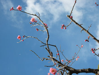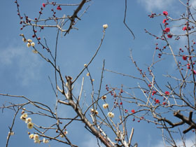 梅は思った通り、そこまで咲いておらず、日が良く当たるところだけは咲いておりました。