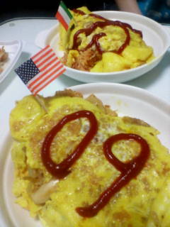 おくさん一人悪戦苦闘の果てに出来上がったものが、画像のオムライスです。